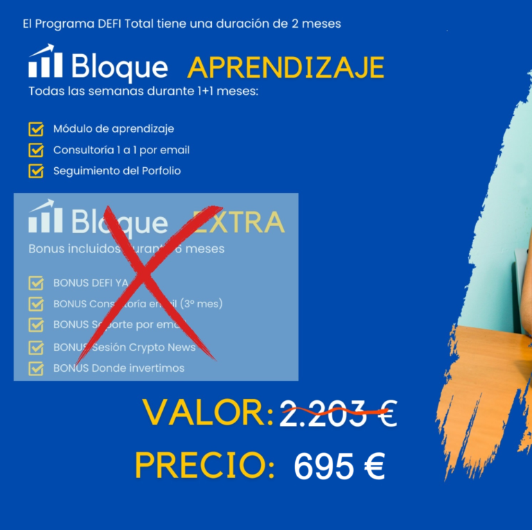 - Pues debería serlo, por todo lo que aporta (como invertir en DEFI con altos beneficios, seguridad, mínimo riesgo, y fácilmente) ya que NO hay ningún curso DEFI tan completo y práctico en el mercado y además las soporte individual (ya que en las sesiones multitudinarias, al final no se resuelven tus dudas).