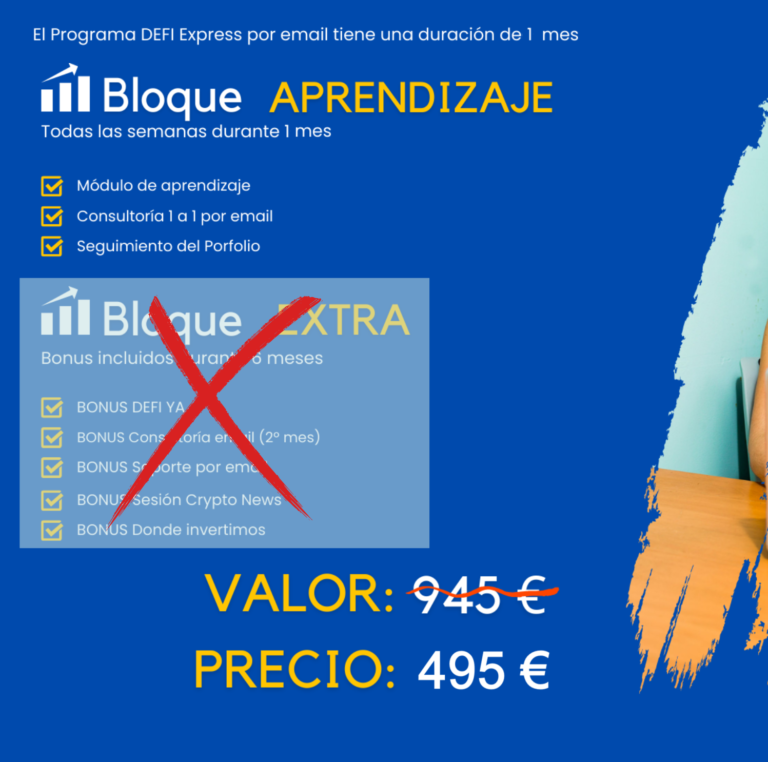 - Pues debería serlo, por todo lo que aporta (como invertir en DEFI con altos beneficios, seguridad, mínimo riesgo, y fácilmente) ya que NO hay ningún curso DEFI tan completo y práctico en el mercado y además las sesiones son individuales (ya que en las sesiones multitudinarias, al final no se resuelven tus dudas).